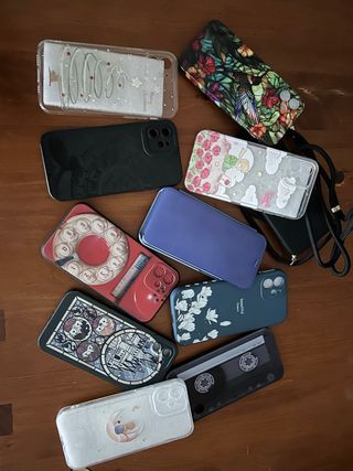 vengo 13 fundas para iPhone 13 hay varios diseños, algunas sin estrenar, con diseño acolchado, trasparentes, negro, con funda protectora cámara. funda para la playa. He tenido que cambiar de móvil y ya no me sirven. Todo el lote 20€. (13 carcasas)