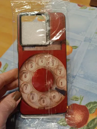 Funda para móvil con un diseño inspirado en un teléfono antiguo de disco. - Diseño de teléfono retro. - Color rojo.