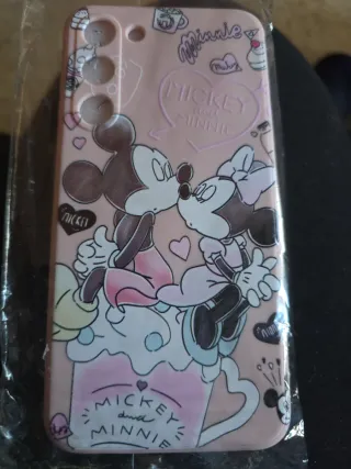 Funda para Samsung S23 Plus con diseño de Minnie y Mickey. - Material: Silicona líquida. - Color: Rosa. - Tipo: Borde recto, impresión lateral.