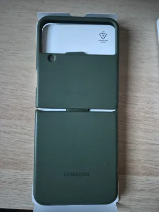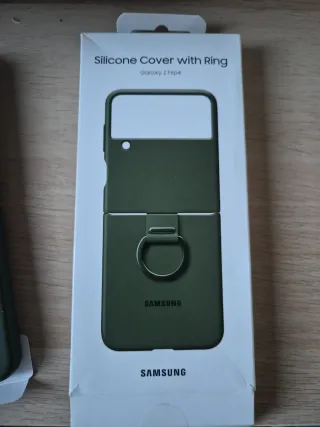 Funda protectora para Samsung Galaxy Z Flip 4. - Color verde militar. - Diseño que cubre ambas partes del teléfono. - Con anilla