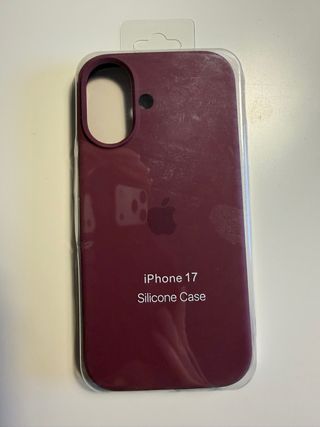 Funda de silicona para iPhone 17. - Color burdeos. - Tacto suave. - Interior de microfibra.