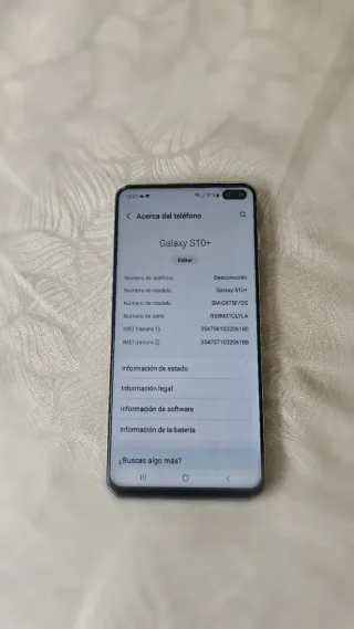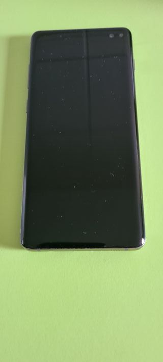 Teléfono móvil Samsung Galaxy S10+ con 512GB de almacenamiento. Estética: En perfectas condiciones sin rayones. Recientemente se le ha sustituido la batería por una original y el cristal con marco completo, pero en este caso no es original. Funcionamiento: Funciona todo, la única falla es que el cristal, que no trae un pequeño orificio donde se ubica el sensor de proximidad, por lo que no funciona como debería. Se puede solucionar con pantalla original o alguna de competencia que sea compatible con ello. Solo trato en mano.