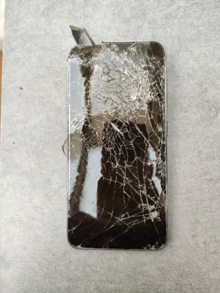 Teléfono móvil Samsung Galaxy en color blanco. - Pantalla agrietada.