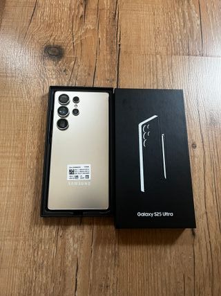 Vendo mi Samsung S25 Ultra gris titanio. Capacidad de almacenamiento: 512 GB. La pantalla no presenta ningún arañazo, ya que siempre ha tenido una película protectora. El teléfono móvil sigue en garantía hasta el 31 de enero de 2027. Se proporcionará una factura para cualquier solicitud de cobertura de la garantía. Las imágenes reflejan fielmente el estado del artículo y sustituyen cualquier descripción adicional del producto. Embalaje original incluido. • Contenido del envío tal y como se muestra en la imagen. También incluyo una lámina protectora para la pantalla. Esta se aplica con una herramienta de centrado.
