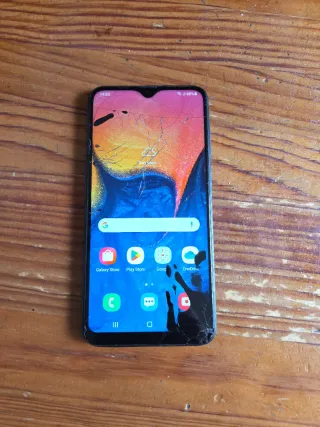 Teléfono móvil Samsung Galaxy A10 de segunda mano. (Pantalla rota solo estetica) - Color negro. - Pantalla de 6.2 pulgadas. - Cámara trasera de 13 MP. - Batería de 3400 mAh.