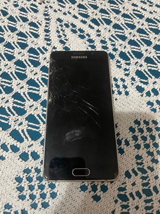 Teléfono móvil Samsung Galaxy A5 2016 en color negro. La pantalla presenta grietas. - Pantalla con grietas. Para piezas o reparar.