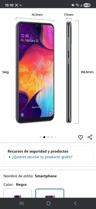 Samsung Galaxy A50 128g de almacenamiento,4 de Ram