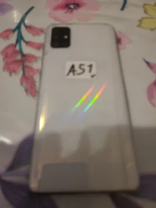 Teléfono móvil Samsung Galaxy A51 con acabado iridiscente. - Capacidad de almacenamiento de 128 GB. - Diseño moderno y llamativo. - En perfecto estado, tiene protector que se quita. Pantalla intacta - Vendo por no usar