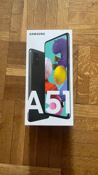 Teléfono móvil Samsung Galaxy A51 en su caja original. - Color: Prism Crush Blue. - Pantalla Infinity-O de 6.5 pulgadas. - Cámara cuádruple trasera.