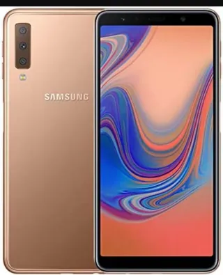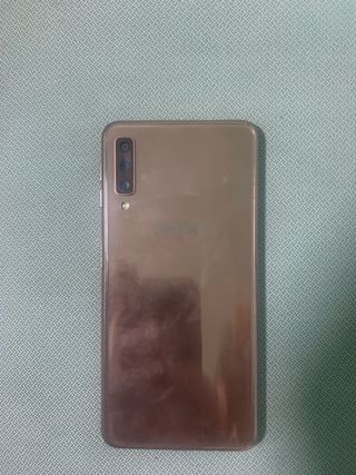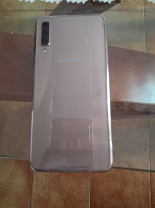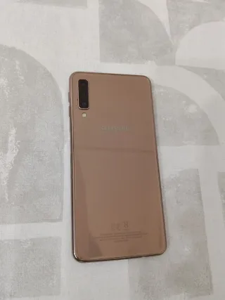 Teléfono móvil Samsung Galaxy A7 en color dorado. Se encuentra en excelente estado. - Pantalla de 6 pulgadas. - Cámara trasera triple. - Batería de larga duración.
