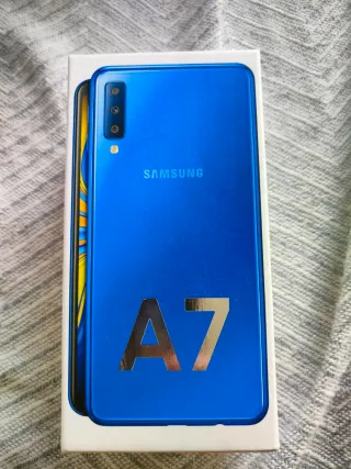 Teléfono móvil Samsung Galaxy A7 en color azul y con 128 GB de almacenamiento. - Pantalla Super AMOLED de 6.0 pulgadas. - Procesador Octa Core. - Cámara trasera triple (24 MP + 5 MP + 8 MP). - Cámara frontal de 24 MP. - Conectividad 4G LTE. Tapa trasera con marca de una caída pero no afecta al funcionamiento
