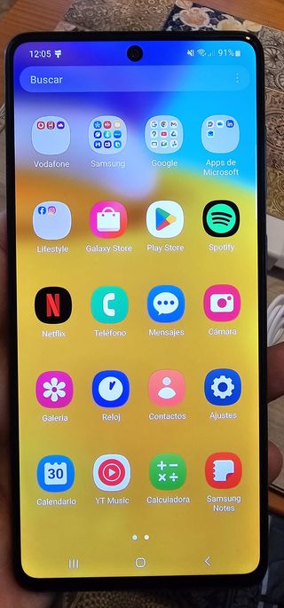 Teléfono móvil Samsung Galaxy A71 128GB La pantalla tiene un defecto en colores claros, se ven marcas del fondo de pantalla (foto 2), algo común en estos teléfonos por el uso pero el funcionamiento es perfecto. El teléfono siempre ha estado protegido tanto pantalla como cámara y nunca ha recibido ningún golpe. Incluye fundas y protectores.