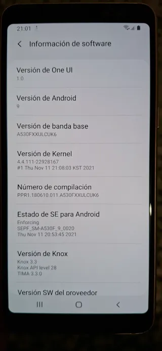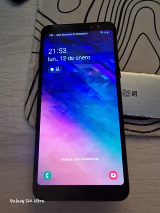 Se vende smartphone Samsung Galaxy A8 2018 (SM-A530F) Libre Dual SIM. Teléfono móvil en buen estado y funcionando correctamente. Pantalla de 5,6" pulgadas, Sistema Operativo Android 9, cuenta con 4Gb de memoria RAM y 32Gb de almacenamiento interno ampliable mediante tarjeta micro SD. Cuenta además con sensor de huella, desbloqueo facial, USB tipo C, etc. Se incluye cable y enchufe transformador original. No se admiten pagos ni se realizan envíos mediante el servicio de wallapop. Envíos previo pago vía transferencia, bizum o PayPal amigo.