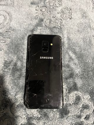 Teléfono móvil Samsung Galaxy A8 (2018) en color negro. Pantalla con protector. La parte trasera esta rota pero no afecta al funcionamiento, la pantalla esta perfecta (lo que se ve en las fotos es el protector) - Pantalla de 5.6 pulgadas. - Cámara principal de 16 MP.