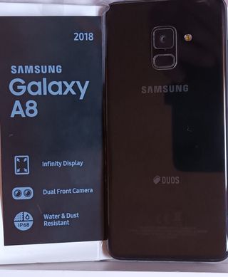 Teléfono móvil Samsung Galaxy A8 2018 en color negro. Incluye funda original Samsung, caja original y los accesorios. - Pantalla de 5.6 pulgadas. - Cámara principal de 16 MP. - Cámara frontal de 16 MP + 8 MP. - 4G LTE.