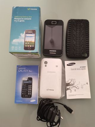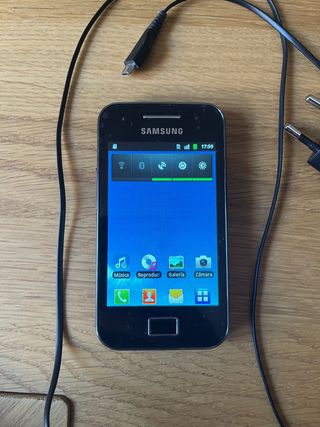 Samsung Galaxy Ace (GT-S5830) Vendo este clásico Samsung Galaxy Ace en buen estado. Tiene una pantalla TFT de 3,5″ (320×480), con Android 2.3 (Gingerbread) Funciona con un procesador de 800 MHZ, 384 MB de RAM y almacenamiento ampliable con microSD hasta 32 GB Cámara trasera de 5 MP con flash LED Batería de 1350 mAh extraíble