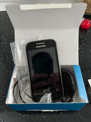 Teléfono móvil Samsung Galaxy Ace con su caja original y accesorios. - Incluye cargador. - Incluye funda protectora blanca.