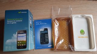 Teléfono móvil Samsung Galaxy Ace en su caja original. - Incluye cargador. - Incluye guía de inicio rápido. - Incluye carcasa trasera adicional.