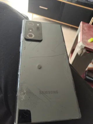 Teléfono móvil Samsung Galaxy Note 20 Ultra en color negro. - Pantalla grande. - Diseño elegante. Con unas grietas en la parte de atras