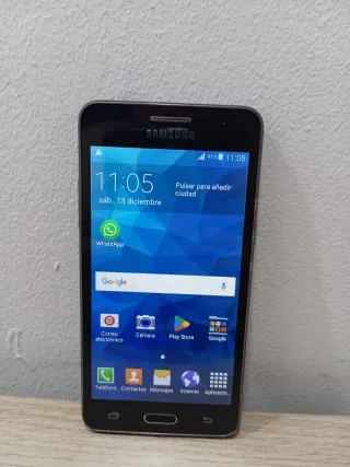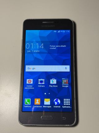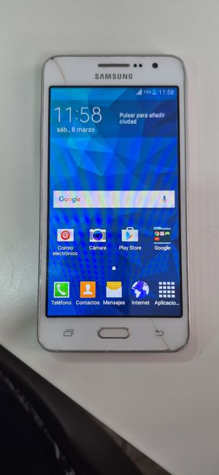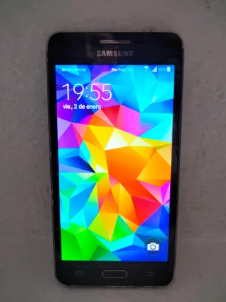 Teléfono Samsung Galaxy Grand Prime en buen estado. Tiene algunas marcas de uso. Lleva una pequeña raja en la pantalla pero no afecta nada al táctil el táctil va perfecto - Pantalla de 5 pulgadas. - Cámara trasera de 8MP. - Cámara frontal de 5MP.