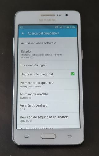Teléfono Samsung Galaxy Grand Prime en buen estado. Tiene algunas señales de uso. - Modelo: G530FZ - Versión de Android: 5.0.2 - Revisión de seguridad de Android: 2017-08-01