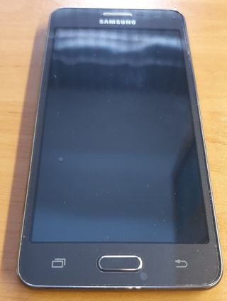 Teléfono móvil Samsung Galaxy Grand Prime en color negro. Un dispositivo funcional y con un diseño clásico, funciona perfectamente con marcas de uso, solo telefono. - Pantalla de 5 pulgadas. - Cámara trasera de 8 MP. - Cámara frontal de 5 MP.