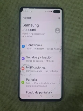 Teléfono móvil Samsung Galaxy S10 Plus en color negro Vendo moví Samsung galaxy s10 plus en perfecto estado de funcionamiento lo he usado asta hoy tiene protector hidrógel anti espia Lo vendo por cambio de modelo aunque tiene en la pantalla una pequeña grieta y un punto negro en la esquina no le impide nada su funcionamiento Se puede usar sin ningún problema Pantalla grande y vibrante. - Diseño elegante y moderno. - Cámara versátil para fotos de alta calidad.