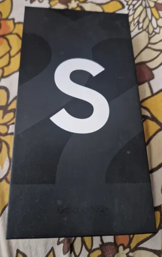 Caja original vacía para el Samsung Galaxy S22. - Diseño elegante en color negro. - Incluye el logo S grande. - Texto Galaxy S22+ en la parte inferior.