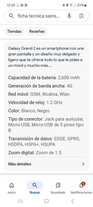 Samsung Galaxy Grand Neo Plus 8Gb de capacidad A pesar del tiempo funciona todo sin problemas.