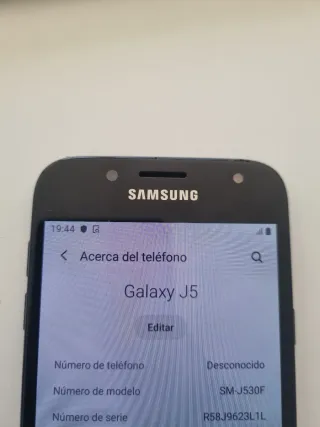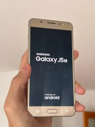 En buen estado y funcionando. Recien formateado. Teléfono móvil Samsung Galaxy J5 en color negro y con 16GB de almacenamiento. - Pantalla HD SAMOLED de 5.2 pulgadas. - Procesador Octa Core. - Cámara principal y frontal de 13MP. - Incluye lector de huellas dactilares. - Cuerpo metálico.