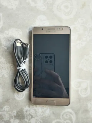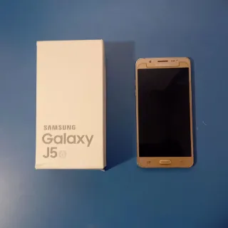 Móvil Samsung Galaxy J5 (2016) en color dorado. Listo para configurar. Con cable y cargador, funciona perfectamente