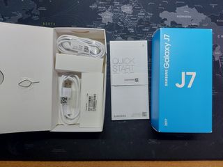 Teléfono Samsung Galaxy J7 en su caja original. - Incluye auriculares sin usar. - Incluye protector de pantalla sin usar aparte del que ya está instalado. - Documentación original.