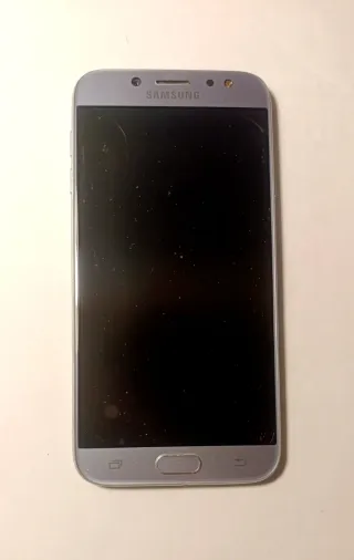 Teléfono móvil Samsung Galaxy J7 2017 en color plata. Ni carga ni se enciende, para reparar o piezas. - Pantalla de 5.5 pulgadas. - Cámara trasera de 13 MP. - Cámara frontal de 13 MP. - Batería de 3600 mAh.
