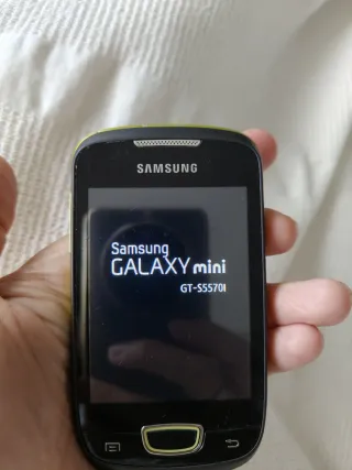 Teléfono móvil Samsung Galaxy Mini S5570i. - Edición Black Española, colores negro y verde - Incluye caracterísitcas de Redes Wi-Fi, Bluetooth, Conexión 3G, Radio FM, Cámara y posibilidad de expansión de almacenamiento a través de targeta SD. - Se usó en 2014 durante aproximadamente un año, ha estado sin uso desde entonces, la autonomía de la batería es prácticamente la misma de fábrica. -Android 2.3.6 y Teléfono libre