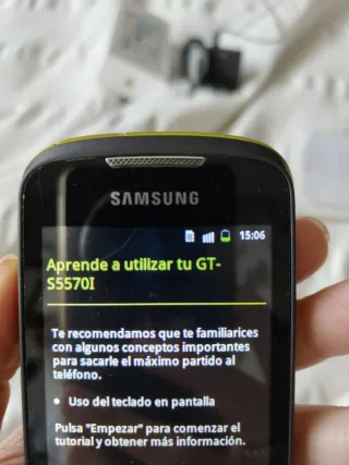Teléfono móvil Samsung Galaxy mini 2 en buen estado, incluye cable. - Color negro y amarillo. - Incluye cable de carga.