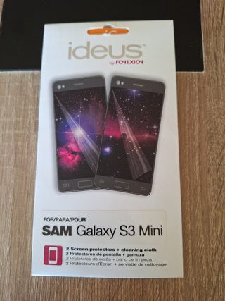 Se vende pack protectores de pantalla + gamuza para móvil Samsung Galaxy S3 mini de la marca ideus. Nuevo a estrenar, sin abrir, no usado. Ver fotos
