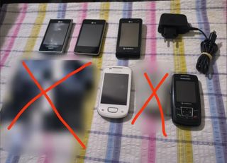 Lote de 5 móviles antiguos y el cargador de uno de ellos (LG Viewty). Los demás no los encuentro. Vendo otros 2 teléfonos en mi perfil de parecidas circunstancias. PODRÍA HACERSE UN PACK CON TODOS O ALGUNO CONCRETO. Con batería menos uno de ellos (LG L3). Unos encienden y otros no. Varios como no tengo el cargador no puedo comprobarlo. LOS VENDO PARA PIEZAS O COLECCIÓN. Los modelos son los siguientes (de izquierda a derecha): - Samsung Galaxy mini GT-S5570. - Samsung SGH E250. - LG L3 (E400). - LG T385. - LG Viewty KU990. **Los tachados están vendidos!** Cualquier duda atiendo sin problemas! MAS PRODUCTOS EN MI PERFIL!