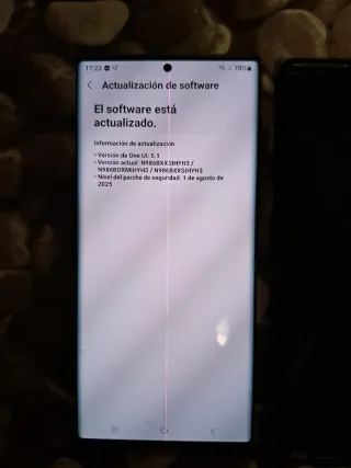 Teléfono móvil Samsung Galaxy Note Ultra 5G. - Versión de One UI: 5.1 - Nivel del parche de seguridad: 1 de agosto de 2025 Tiene un golpe en la parte trasera, y una línea rosa en vertical, la pantalla está intacta y con protector de pantalla, funda negra de silicona, funciona con 1y2 tarjetas sim,ranura para micro sd. 2 años de uso normal, la batería aguanta bien todo el día sin ahorrar batería. lo vendo sincargador. Opción de cambiar por algo de mi interés.