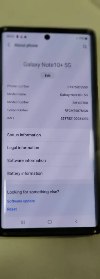 Teléfono Samsung Galaxy Note 10+ 5G. - Modelo: SM-N976B - IMEI: 358782100084392 - Número de serie: RFCM7007MGN