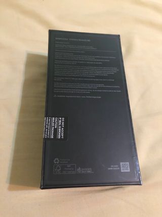 Con la pegatina atrás de nuevo. Teléfono móvil Samsung Galaxy Note 20 Ultra 5G. Pantalla Dynamic AMOLED 6,9” 3.088 x 1.440px WQHD+ 496 ppp, 120 Hz, 19,3:9, HDR10+ Procesador Exynos 990 RAM 12 GB RAM LPDDR5 Almacenamiento 256 Cámara frontal 10 MP (1/3,24”, 1,22 µm), AF, f/2.2 Cámaras traseras Cuatro cámaras: Principal: 108 MP (1/1,33”, 1,8 µm), f/1.8, OIS Gran angular: 12 MP (1/2,55”, 1,4 µm), f/2.2 Telefoto: 12 MP (1/3,6”, 1 µm), f/3.0, OIS Sensor profundidad: Láser AF Conectividad 5G (NSA y SA), Sub6 / mmWave Wi-Fi 802.11 a/b/g/n/ac/ax 2.4G+5GHz, HE80, MIMO, 1024-QAM Bluetooth 5.0, ANT+, NFC GPS, Galileo, Glonass, BeiDou Batería 4.