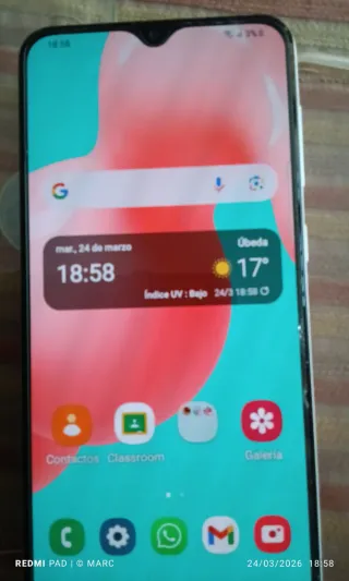Teléfono móvil Samsung Galaxy A30 S. 4/64 - Pantalla grande y vibrante. - Cámara versátil para capturar tus momentos. - Diseño moderno y ergonómico. Siempre ha tenido protección doble, las dos muescas que se ven en la pantalla no alteran a la visión porque están en el lado y es el cristal templado que tiene puesto no es la pantalla