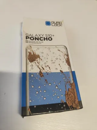 Protector para Samsung Galaxy S10+. - Diseñado para proteger tu teléfono de la lluvia y el barro. - Transparente con diseño de gotas de agua y salpicaduras de barro.