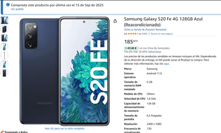 Teléfono móvil Samsung Galaxy S20 FE en color lavanda. Incluye guía de inicio rápido. - Capacidad de almacenamiento de 128GB. - Modelo SM-G780F/DS. Va estupendamente, lo vendo por cambio al modelo superior. Tiene una pantalla, agilidad increible y muy buena bateria. Detalle: Tiene un pequeño arañazo en el cristal de la camara trasera, solo afecta a las fotos de muy lejos que se ve una pequeña niebla, las fotos normales y de cerca sale perfectas. Te lo muestro en las fotos. Regalo la funda. Movil de gama alta con precio ajustado. Se entrega restablecido de fabrica y listo para configurar y hacerlo tuyo.