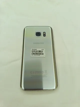 Teléfono móvil Samsung Galaxy S7 en acabado plateado. Tiene una pequeña raja en la parte superior frontal, apenas se nota. La pantalla tiene burn-in en la parte central e inferior (ver fotos) que se nota poco con fondos oscuros y más con fondos claros. Por lo demás no tiene problemas de funcionamiento. Incluye funda de goma y auriculares originales aún precintados. - Pantalla de 5.1 pulgadas. - Cámara principal de 12 MP. - Procesador Exynos 8890.