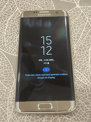 Teléfono Móvil Samsung Galaxy s7 edge de 32 GB de memoria en color negro. Pantalla de 5,5" Quad HD Super AMOLED. Cámara trasera de 12 MP y delantera de 5 MP. Sistema operativo Android 8.0. Capacidad de batería de 3600 mAh. Incluye cargador y cable para carga. Se puede instalar una tarjeta nanoSIM y una tarjeta microSD. En perfecto estado de funcionamiento. Presenta una pequeña rotura en la pantalla en la parte inferior, pero que apenas se nota y no afecta a su funcionamiento. Resistente al agua y al polvo (IP68)