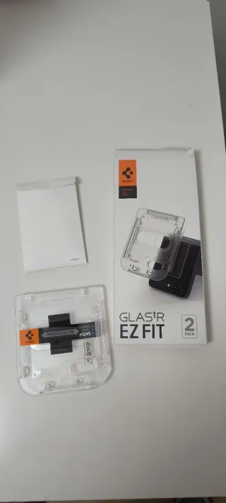 Protector de pantalla Spigen para Galaxy Z Flip 5. Incluye un aplicador para una instalación sencilla. - sólo viene un protector de pantalla. - Diseño EZ FIT para fácil alineación.