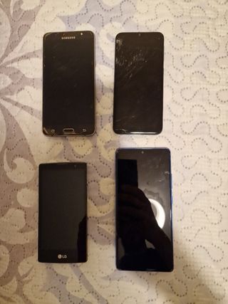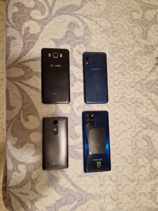 pack 4 móviles s10 lite, SJ7, LG, A21 móviles usados, pantallas rotas menos la del LG, para gente que quiera reparar. Solo móviles, sin cajas ni accesorios