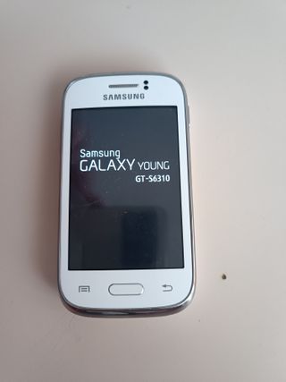 Teléfono móvil Samsung Galaxy Young GT-S6310 en color blanco y plateado. - Pantalla de 3.27 pulgadas. - Cámara de 3 MP. - Procesador de 1 GHz. - Sistema operativo Android.