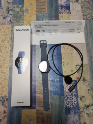 Reloj inteligente Samsung Galaxy Watch 5 en color azul. - Diseño moderno y elegante. - Correa cómoda y ajustable. Sin un rasguño, muy poco usado. Bateria perfecta dia y medio dura su autonomía.