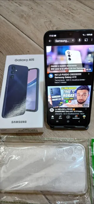 Teléfono móvil Samsung Galaxy A15 en color azul marino. - Samsung Galaxy A 15 - 128GB almacenamiento - 4 + 4GB de RAM virtuales - 4 años de actualizaciones de Android , y 5 años de parches de seguridad - Pantalla SuperAmoled plus mejorada - 5000 mAh de batería - Carga rápida - Protector de cristal templado y funda. - Versión Android: 16 One UI: 8.0